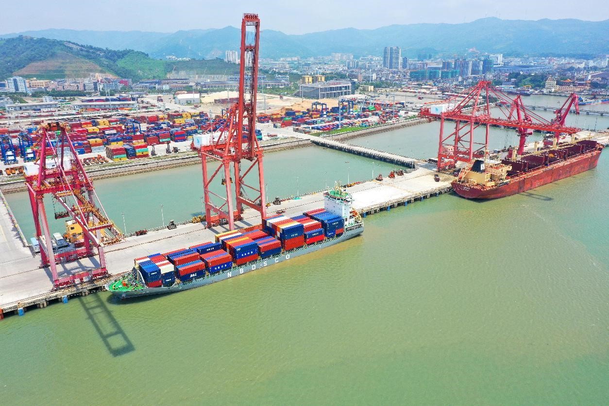 The first direct export shipment under the Regional Comprehensive Economic Partnership starts at the Damaiyu port, Yuhuan, Taizhou, east China's Zhejiang province, June 6, 2022. (People's Daily Online/Duan Junli)