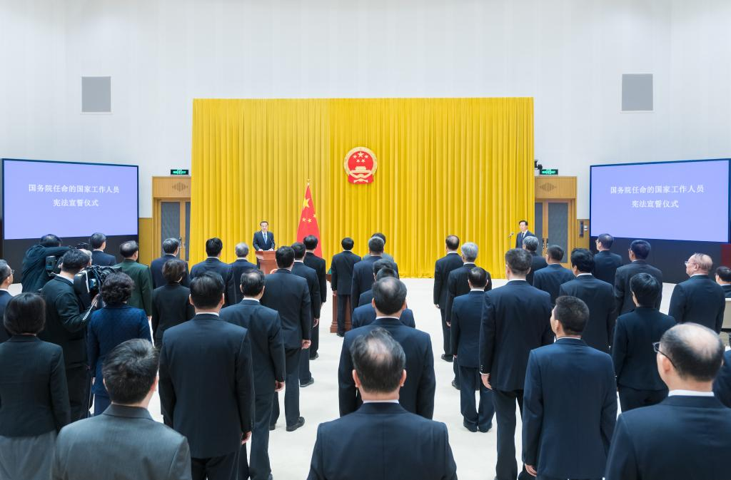 The ceremony was overseen by Premier Li Keqiang, who urged the oath-takers to fulfill their pledge by taking on responsibilities and taking real actions.