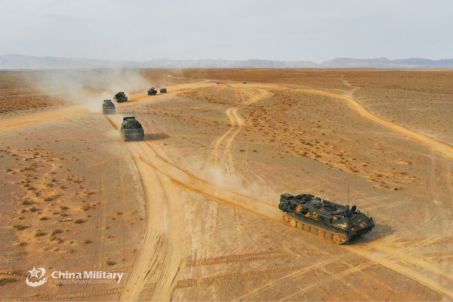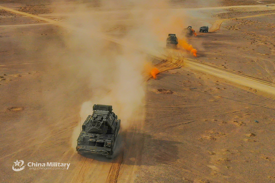 Armored vehicles mounted with air-defense missile systems attached to an air defense brigade under the PLA 72nd Group Army are en route to a designated area during a comprehensive tactical exercise on June 16, 2022. (eng.chinamil.com.cn/Photo by Wang Wenzhou)