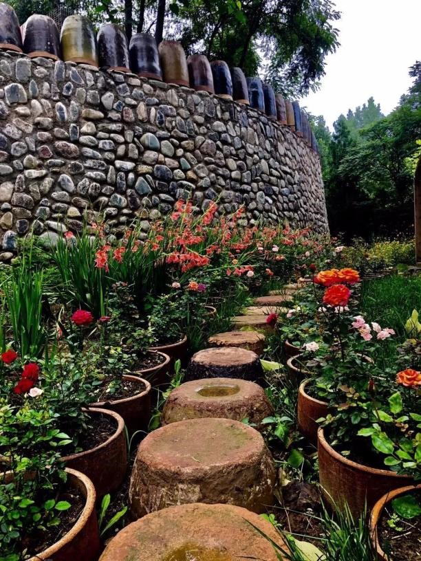 In Huashu’ao village, Luoning county, Luoyang city of Henan, big ceramic vats are seen everywhere. They are flowerpots, guard bars, and dustbins, as well as road signs and billboards in the village. Besides, they are also sometimes goods shelves in shops and tea tables in meeting rooms. Even the footpath in the village’s valleys is paved with vats.