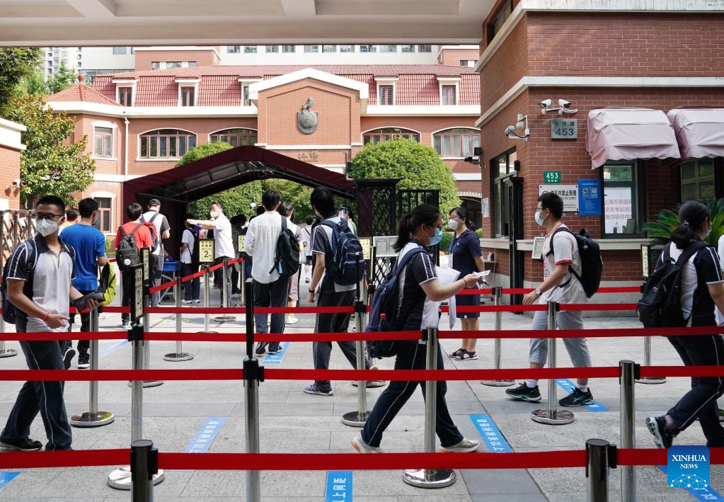 The college entrance exam, also known as Gaokao, in Shanghai started Thursday this year. The Shanghai Municipal government has postponed Gaokao of this city for a month due to the latest resurgence of COVID-19 infections. (Xinhua/Chen Fei)