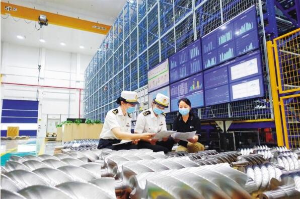 Customs officers in Taicang city, east China’s Jiangsu Province, help a local refrigeration company to acquire authorized economic operator (AEO) status for customs simplification purposes. The adoption of the streamlined customs system will help the company to open up the refrigeration equipment market abroad. (Photo/Yang Zehao)