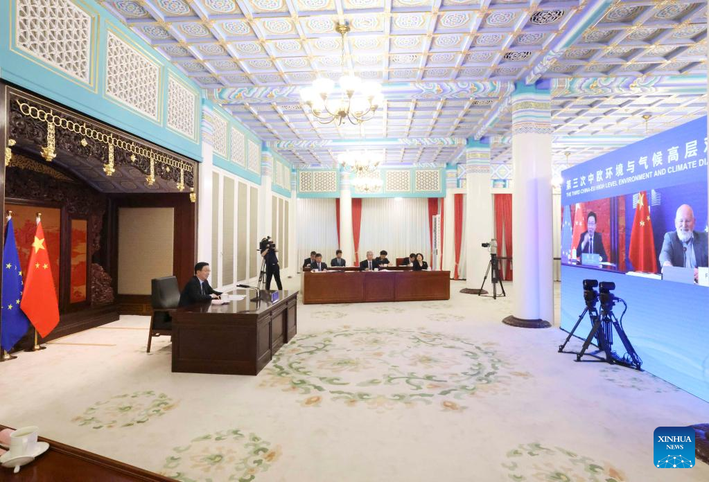 BEIJING, July 8 (Xinhua) -- The third High-level Environment and Climate Dialogue between China and the European Union was held via video link on Friday, with both sides agreeing to deepen cooperation on environment, climate, and energy.