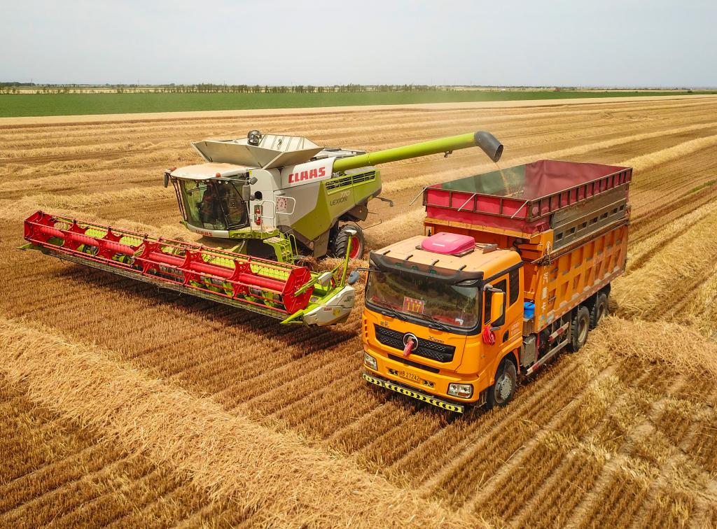 Summer harvest in northwest China's Xinjiang Uygur Autonomous Region is now in full swing. Modern agricultural science, technology and machinery have been applied in the region to help local farmers increase yield and attain a bumper harvest. (Xinhua/Wang Fei)