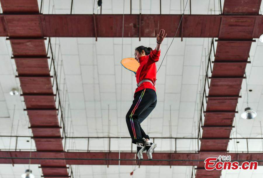 Young female inheritor of tightrope walking shows pizzazz in pursuit of artform in NW China’s Xinjiang