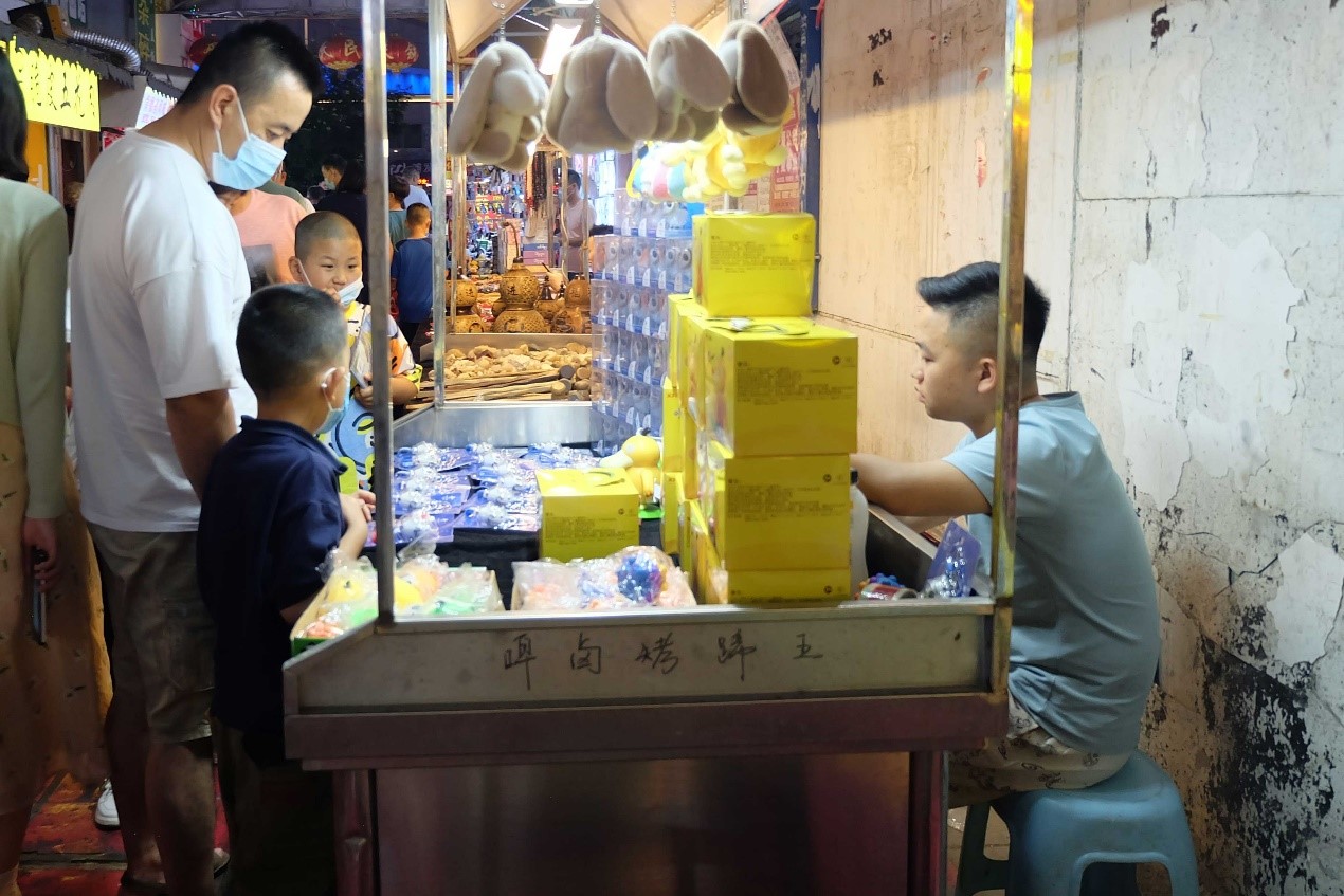 A vendor sells toys at a night market in Yinchuan, northwest China's Ningxia Hui Autonomous Region on July 8, 2022. (People's Daily Online/Zhong Wenxing)