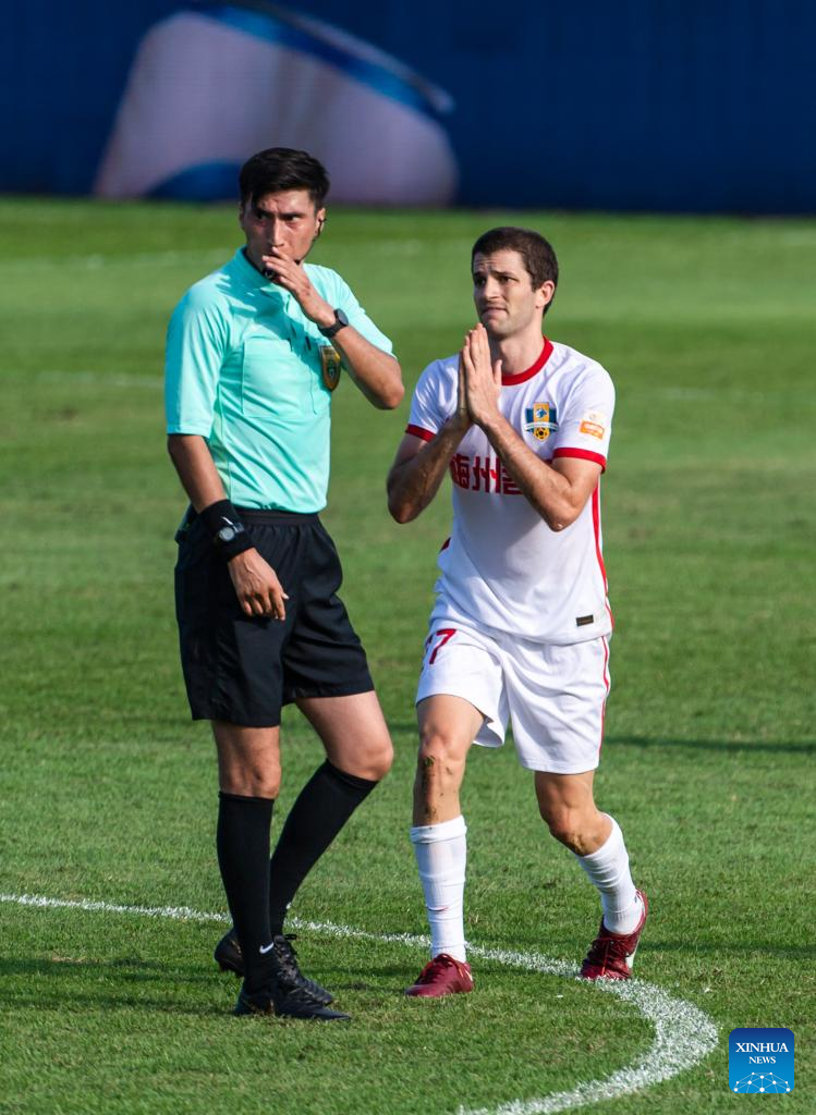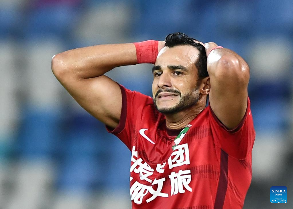 Henrique Dourado of Henan SSLM reacts during a 2022 season Chinese Football Association Super League (CSL) match between Changchun Yatai and Henan SSLM in Haikou, south China's Hainan Province, July 11, 2022. (Xinhua/Hu Zhixuan)
