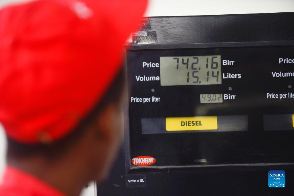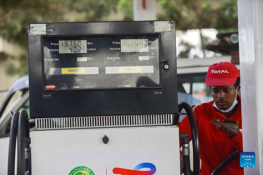 A staff member works at a gas station in Addis Ababa, Ethiopia, on July 8, 2022. (Xinhua/Michael Tewelde)