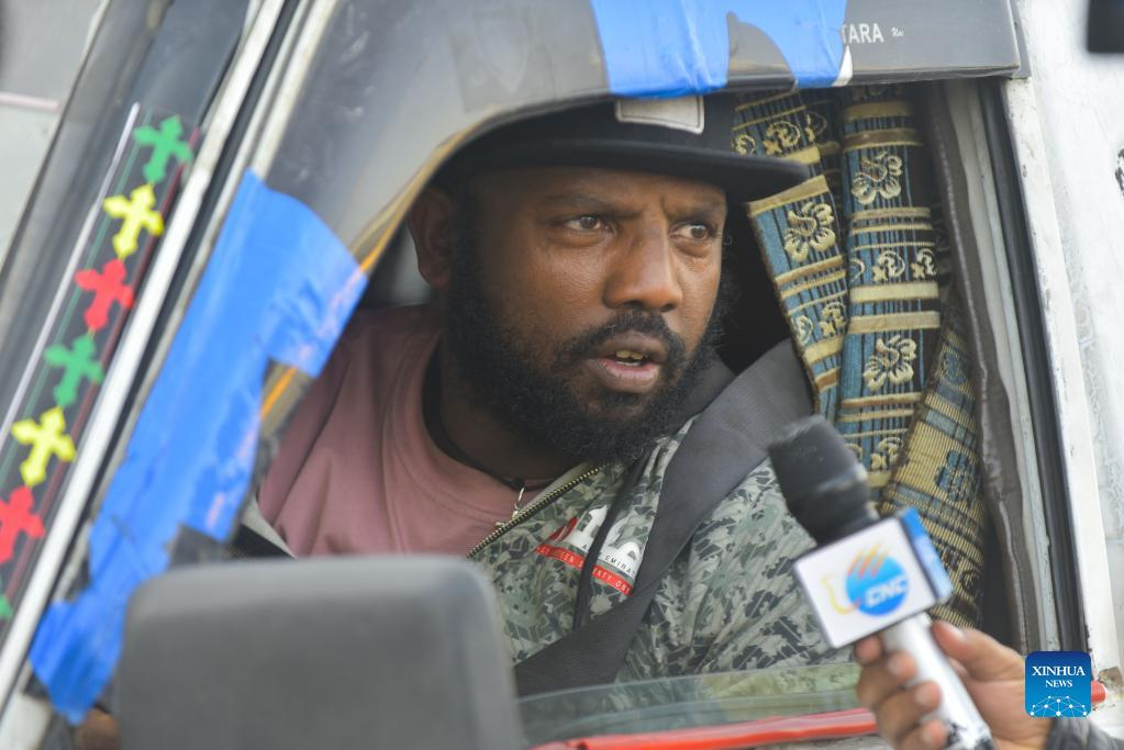 Tewodros Meshesha, a taxi driver, speaks during an interview with Xinhua in Addis Ababa, Ethiopia, on July 8, 2022. (Xinhua/Michael Tewelde)