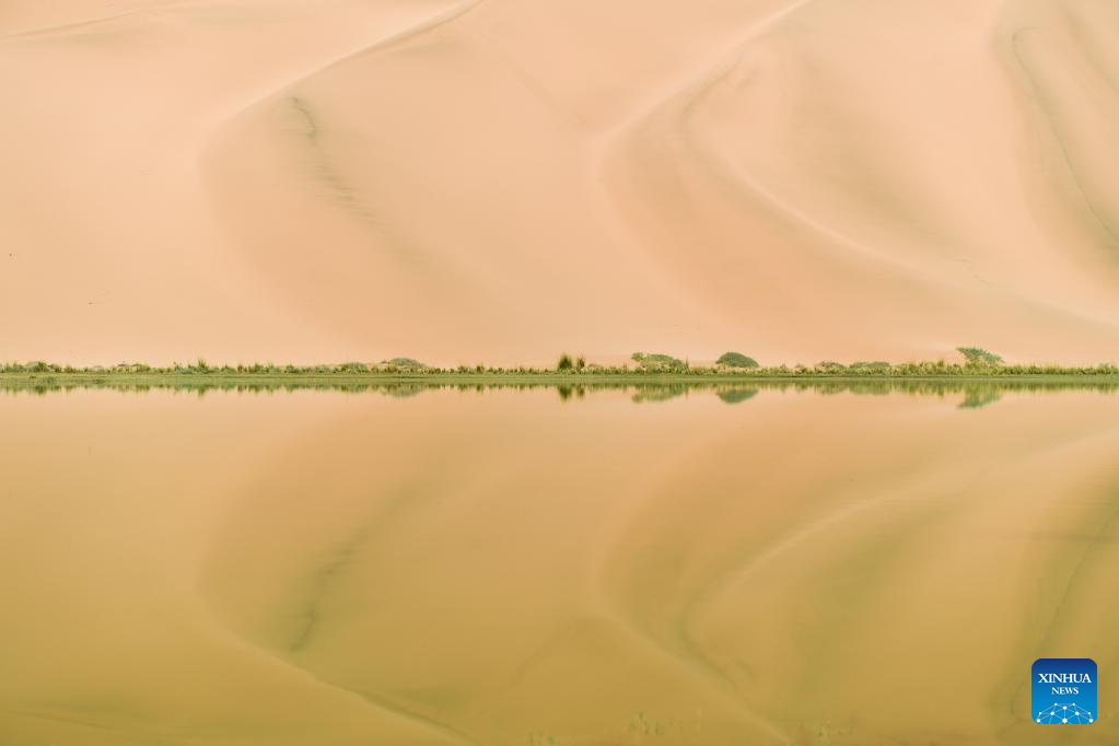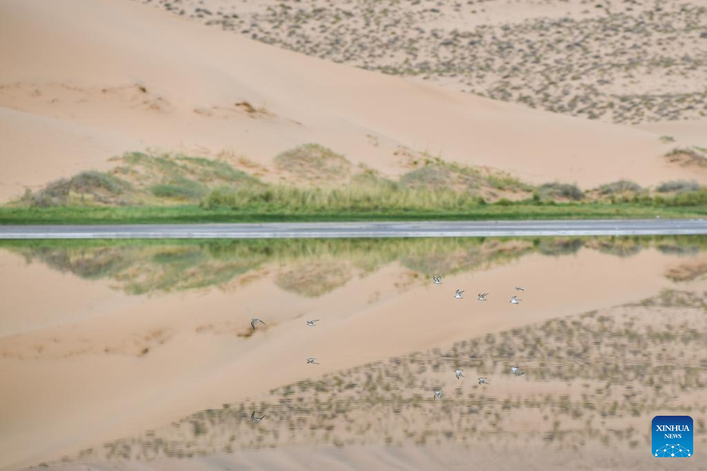 Photo taken on July 13, 2022 shows a view of the Badain Jaran Desert in north China's Inner Mongolia Autonomous Region. (Xinhua/Bei He)
