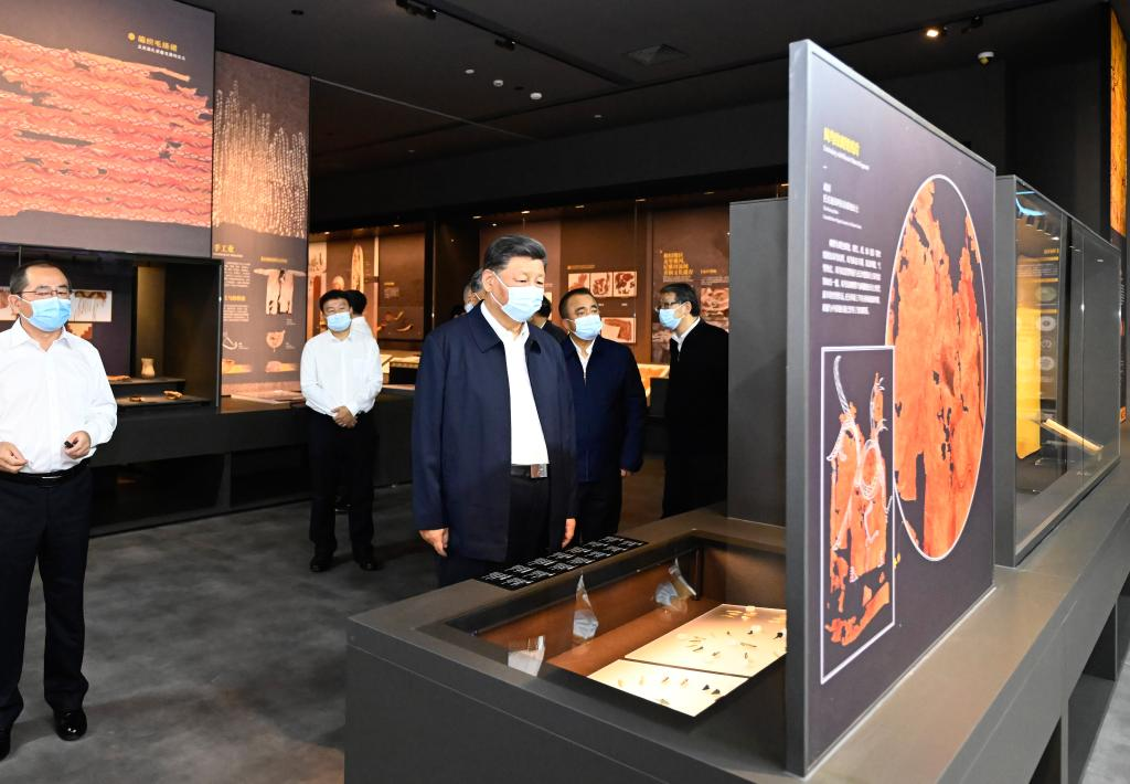 Chinese President Xi Jinping, also general secretary of the Communist Party of China Central Committee and chairman of the Central Military Commission, visits the Museum of the Xinjiang Uygur Autonomous Region in the city of Urumqi, capital of northwest China's Xinjiang Uygur Autonomous Region, July 13, 2022. (Xinhua/Li Xueren)