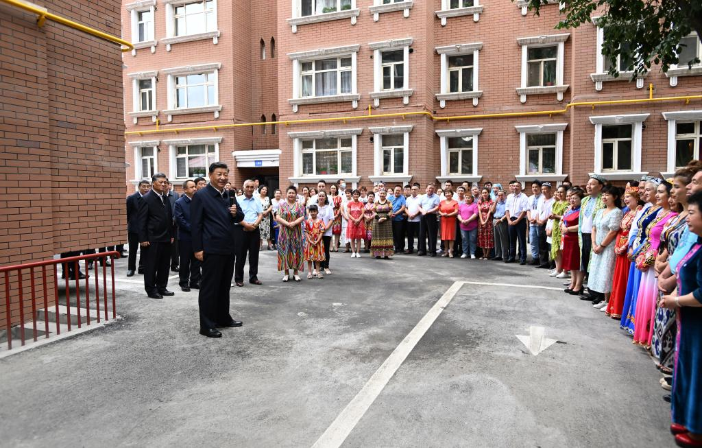 Chinese President Xi Jinping, also general secretary of the Communist Party of China Central Committee and chairman of the Central Military Commission, visits the community of Guyuanxiang in the Tianshan District in the city of Urumqi, capital of northwest China's Xinjiang Uygur Autonomous Region, July 13, 2022. (Xinhua/Yan Yan)