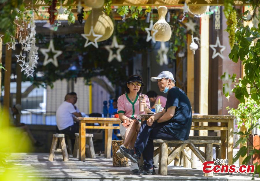 Tourists rest at the International Bazaar in Urumqi, capital of Northwest China's Xinjiang Uyghur Autonomous Region, July 14, 2022. (Photo: China News Service/Liu Xin)