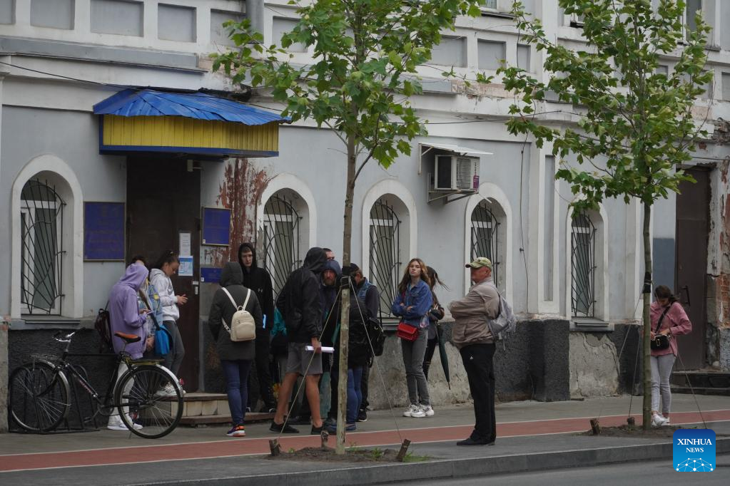 People stand outside a store in Chernihiv, Ukraine, July 13, 2022. (Photo by Roman Petushkov/Xinhua)