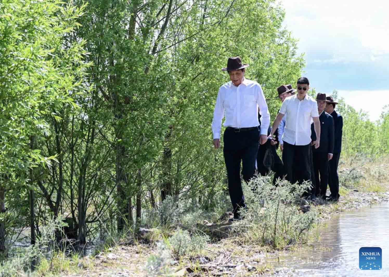 Li Zhanshu, a member of the Standing Committee of the Political Bureau of the Communist Party of China Central Committee and chairman of the National People's Congress Standing Committee, visits Nyingchi, southwest China's Tibet Autonomous Region, July 12, 2022. Li made a research tour in southwest China's Tibet Autonomous Region related to the legislation on the ecological protection of the Qinghai-Tibet Plateau from Tuesday to Friday. (Xinhua/Zhai Jianlan)