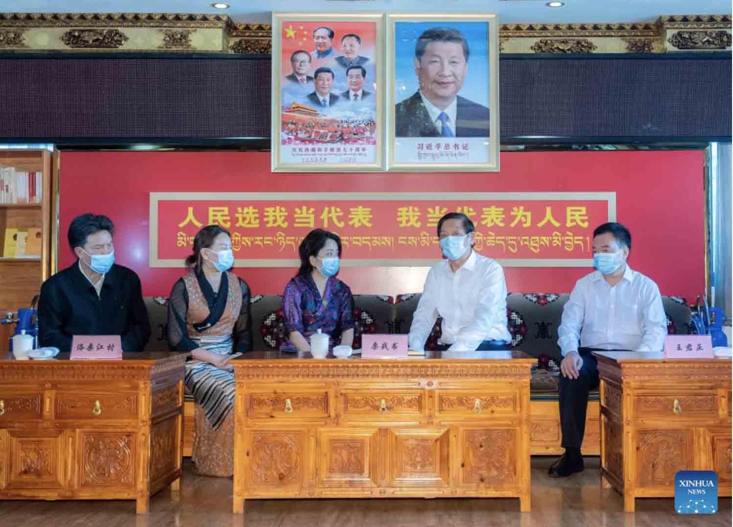 Li Zhanshu, a member of the Standing Committee of the Political Bureau of the Communist Party of China Central Committee and chairman of the National People's Congress Standing Committee, visits a residential community in Lhasa, southwest China's Tibet Autonomous region, July 15, 2022. Li made a research tour in southwest China's Tibet Autonomous Region related to the legislation on the ecological protection of the Qinghai-Tibet Plateau from Tuesday to Friday. (Xinhua/Zhai Jianlan)