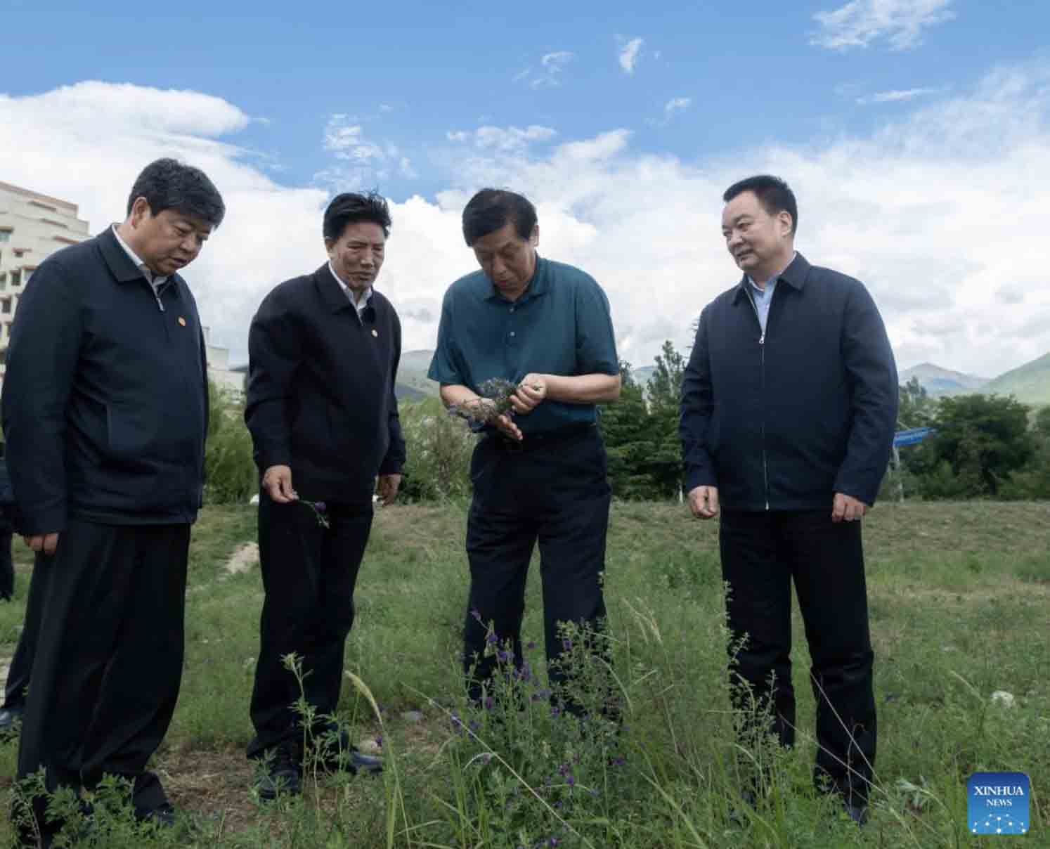 Li Zhanshu, a member of the Standing Committee of the Political Bureau of the Communist Party of China Central Committee and chairman of the National People's Congress Standing Committee, visits Xigaze, southwest China's Tibet Autonomous region, July 13, 2022. Li made a research tour in southwest China's Tibet Autonomous Region related to the legislation on the ecological protection of the Qinghai-Tibet Plateau from Tuesday to Friday. (Xinhua/Zhai Jianlan)