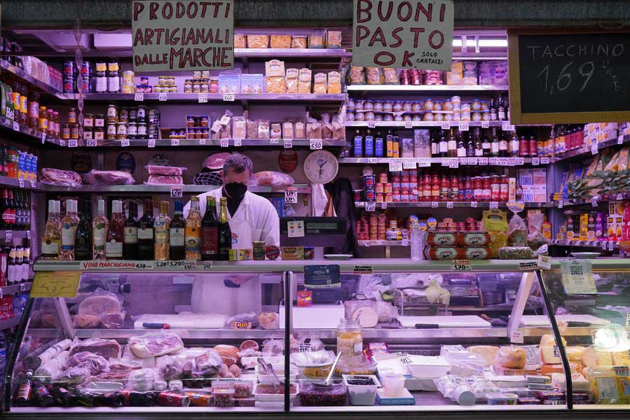 A customer shops at a market in Rome, Italy, April 2, 2022. (Xinhua/Jin Mamengni)