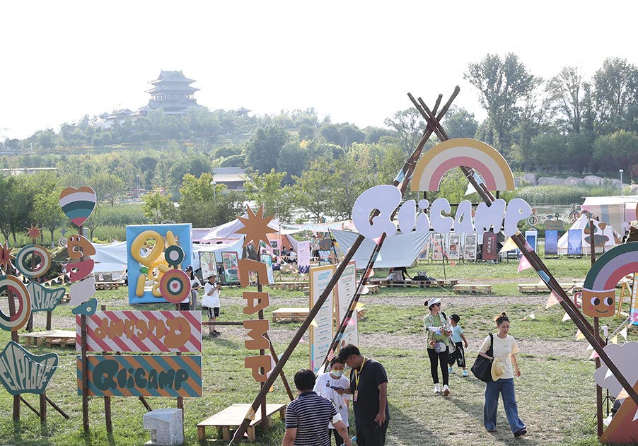 Beijing Expo Park launches its camping festival on Saturday. There are a total of 1,096 camping spots for as many as 3,300 tourists in the park. [Photo by Zou Hong/chinadaily.com.cn]