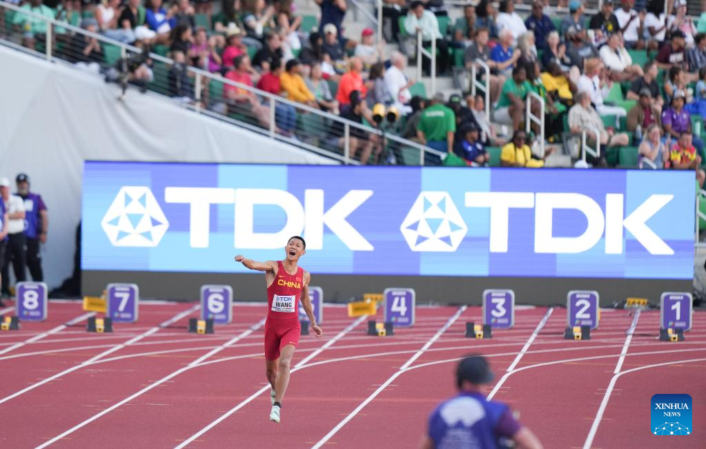 EUGENE, United States, July 16 (Xinhua) -- Wang Jianan stunned the field to grab China's first ever long jump gold medal at the world athletics championships here on Saturday.