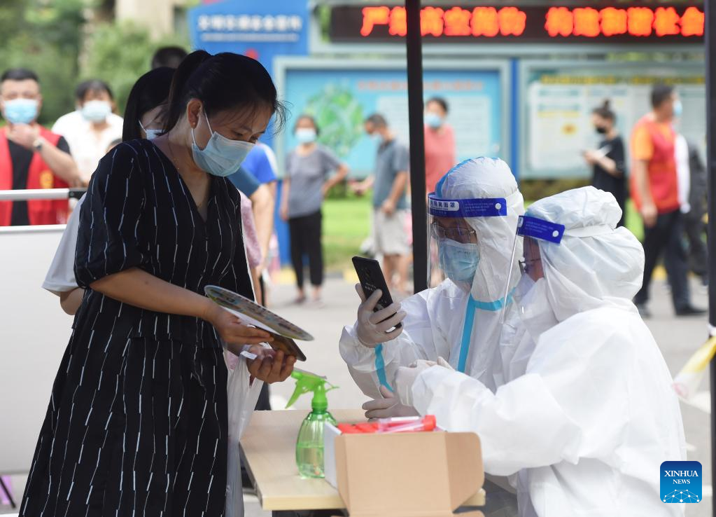 Bengbu in Anhui has started a new round of mass nucleic acid testing from Saturday to Sunday, as the city races against time to contain the latest resurgence of COVID-19 infections. (Xinhua/Zhou Mu)