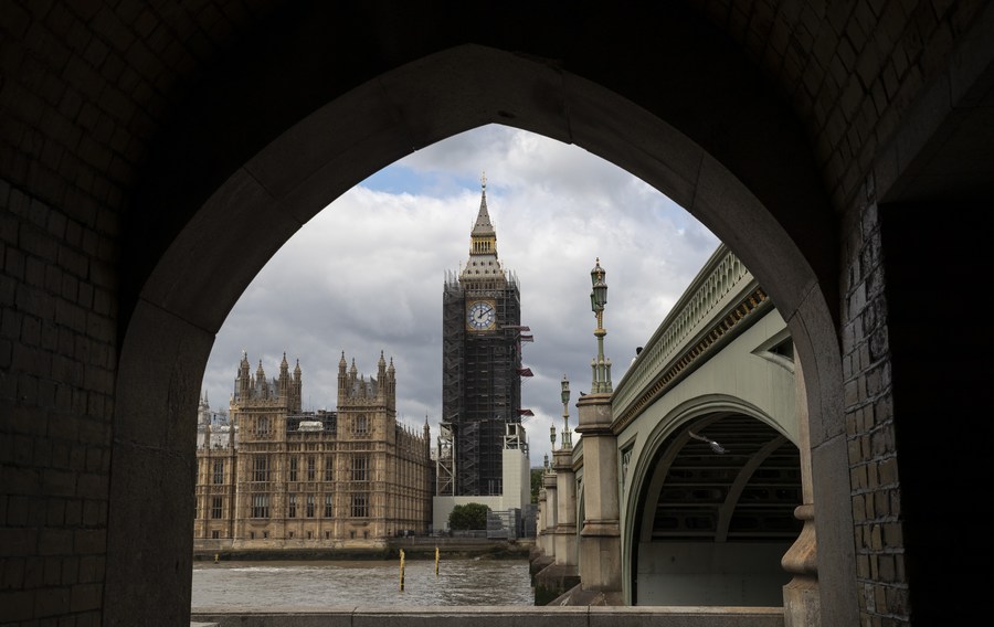 Photo taken on Aug. 18, 2021 shows the Houses of Parliament in London, Britain. (Xinhua/Han Yan)