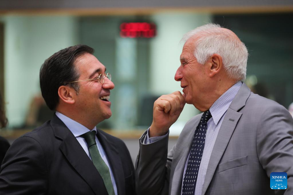 EU High Representative for Foreign Affairs and Security Policy Josep Borrell Fontelles (R) and Spanish Foreign Minister Jose Manuel Albares talk before the meeting of the EU Foreign Affairs Council in Brussels, Belgium, July 18, 2022. (Xinhua/Zheng Huansong)