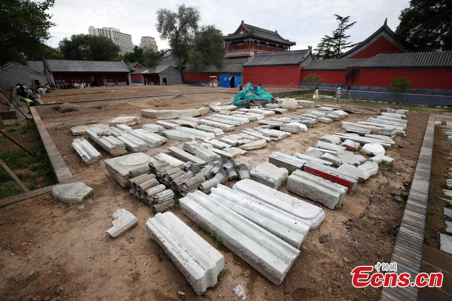 Photo taken on July 15, 2022 shows the restoration site at the Wanshou temple in Beijing. (Photo: China News Service/Fu tian)