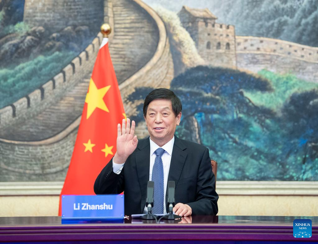 BEIJING, July 19 (Xinhua) -- China's top legislator Li Zhanshu on Tuesday held talks with Bangladeshi parliament speaker Shirin Sharmin Chaudhury via video link, with both sides vowing to enhance parliamentary exchanges.
