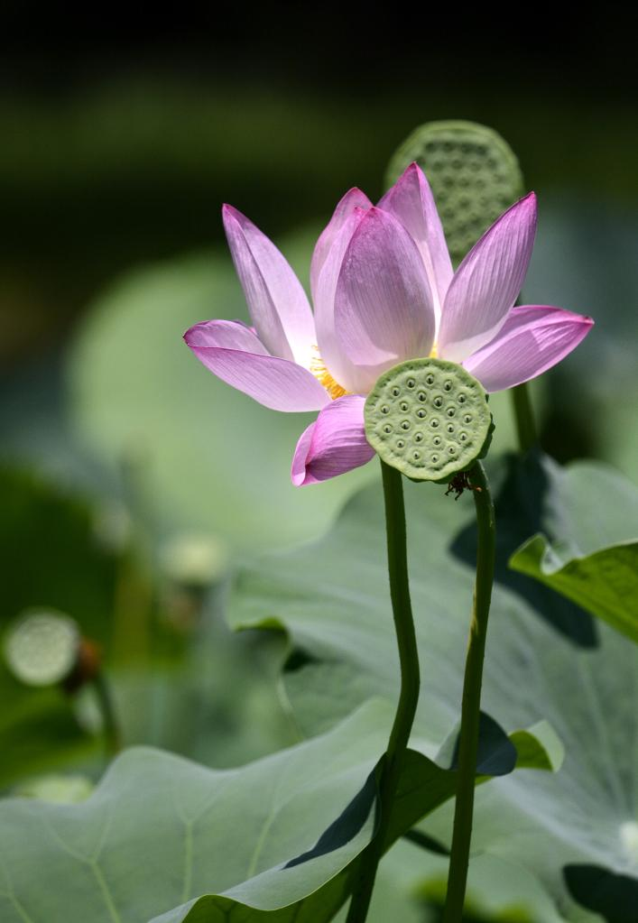 Photo taken on July 20, 2022 shows a blooming lotus flower at Yuanmingyuan Park in Beijing, capital of China. (Xinhua/Li Xin)