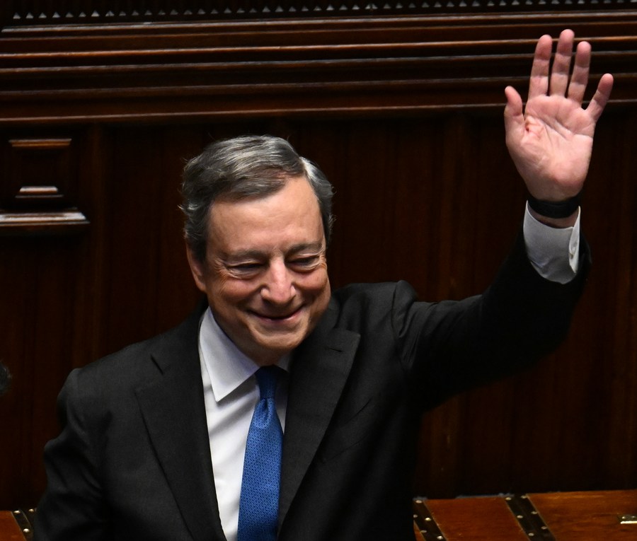 Italian Prime Minister Mario Draghi waves to lawmakers at the end of his address at the lower house of parliament in Rome, Italy, July 21, 2022. (Photo by Alberto Lingria/Xinhua)