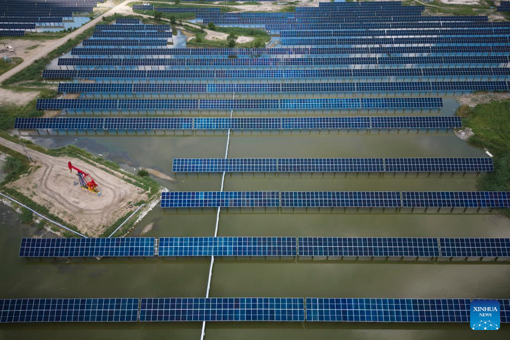 Photo taken on July 21, 2022 shows the Xinghuo Water Surface Photovoltaic Demonstration Project of Daqing Oilfield in Daqing, northeast China's Heilongjiang Province.