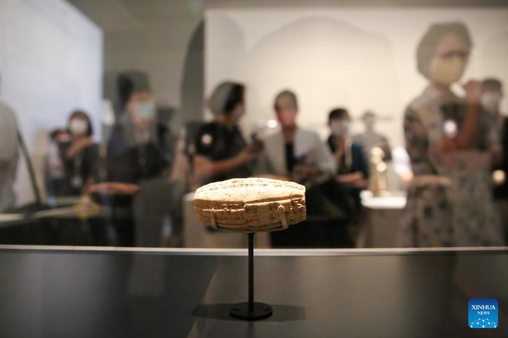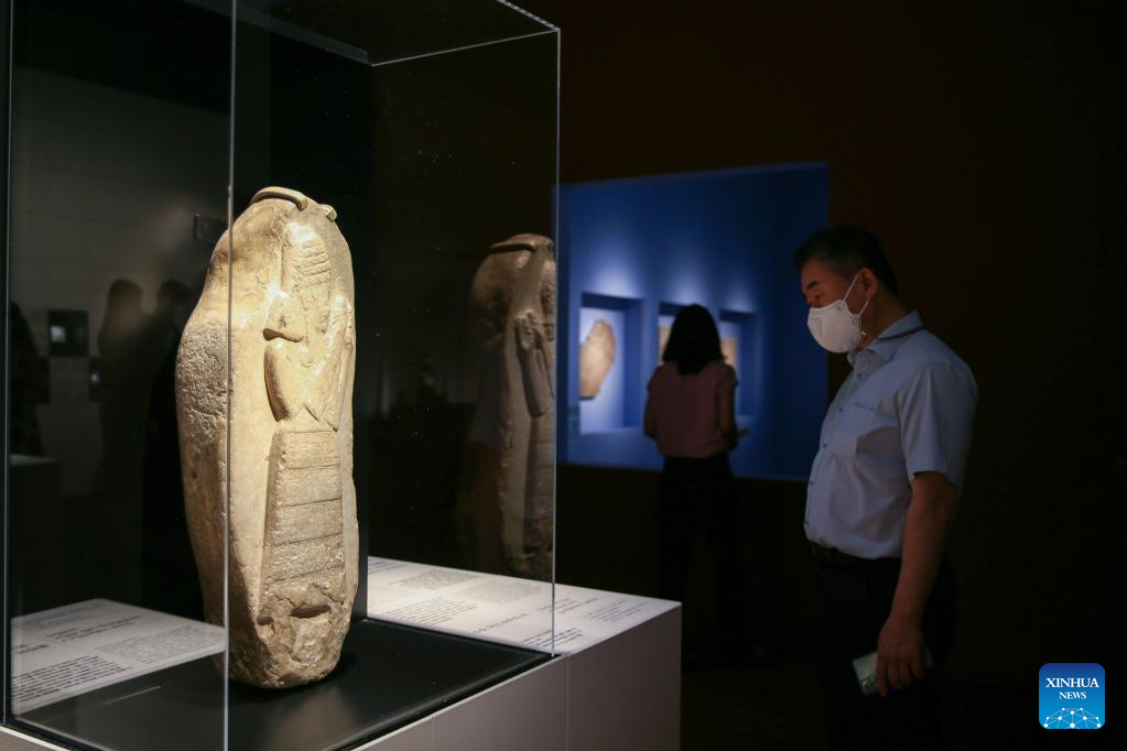 Photo taken on July 21, 202 shows an exhibit at the Mesopotamian Gallery of the National Museum of Korea in Seoul, South Korea. The National Museum of Korea has recently established the Mesopotamian Gallery within its Permanent Exhibition Hall and is presenting an exhibition of Mesopotamian cultural heritage. The exhibition will run from July 22, 2022 to Jan. 28, 2024. (Xinhua/Wang Yiliang)