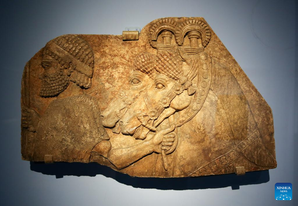 Photo taken on July 21, 2022 shows an exhibit at the Mesopotamian Gallery of the National Museum of Korea in Seoul, South Korea. The National Museum of Korea has recently established the Mesopotamian Gallery within its Permanent Exhibition Hall and is presenting an exhibition of Mesopotamian cultural heritage. The exhibition will run from July 22, 2022 to Jan. 28, 2024. (Xinhua/Wang Yiliang)