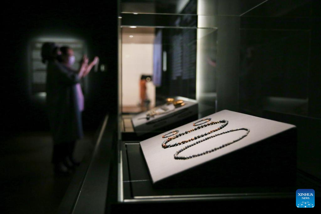 Visitors view exhibits at the Mesopotamian Gallery of the National Museum of Korea in Seoul, South Korea, July 21, 2022. The National Museum of Korea has recently established the Mesopotamian Gallery within its Permanent Exhibition Hall and is presenting an exhibition of Mesopotamian cultural heritage. The exhibition will run from July 22, 2022 to Jan. 28, 2024. (Xinhua/Wang Yiliang)