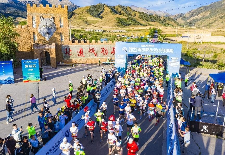 A marathon event is held in Jimusar county, northwest China's Xinjiang Uygur autonomous region, July 17, 2022. (People's Daily Online/ He Long)