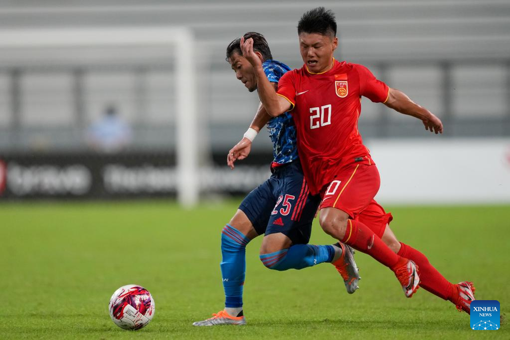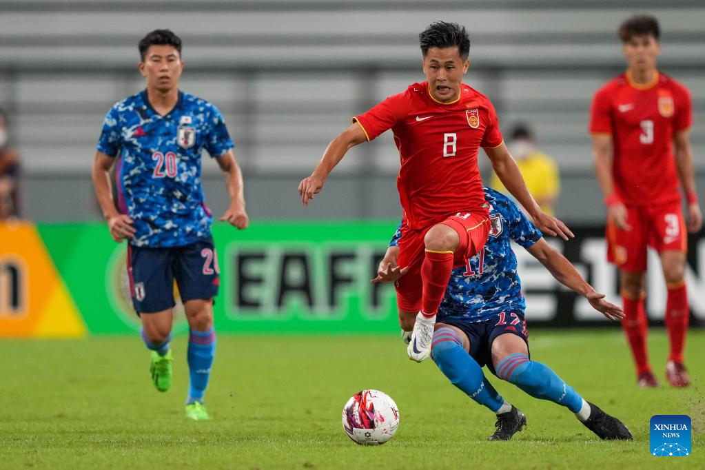 TOKYO, July 24 (Xinhua) -- China drew 0-0 against host Japan thanks to key saves from goalkeeper Han Jiaqi in the East Asian Football Championship men's tournament in Aichi, Japan, on Sunday.