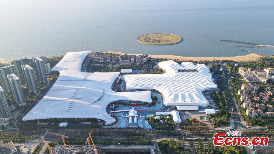 Aerial view shows the Hainan International Convention and Exhibition Center, the venue for the 2nd China International Consumer Products Expo in Haikou, south China's Hainan Province, July 24, 2022. The expo will be held in Haikou from July 25 to 30. (Photo: China News Service/Jia Tianyong)