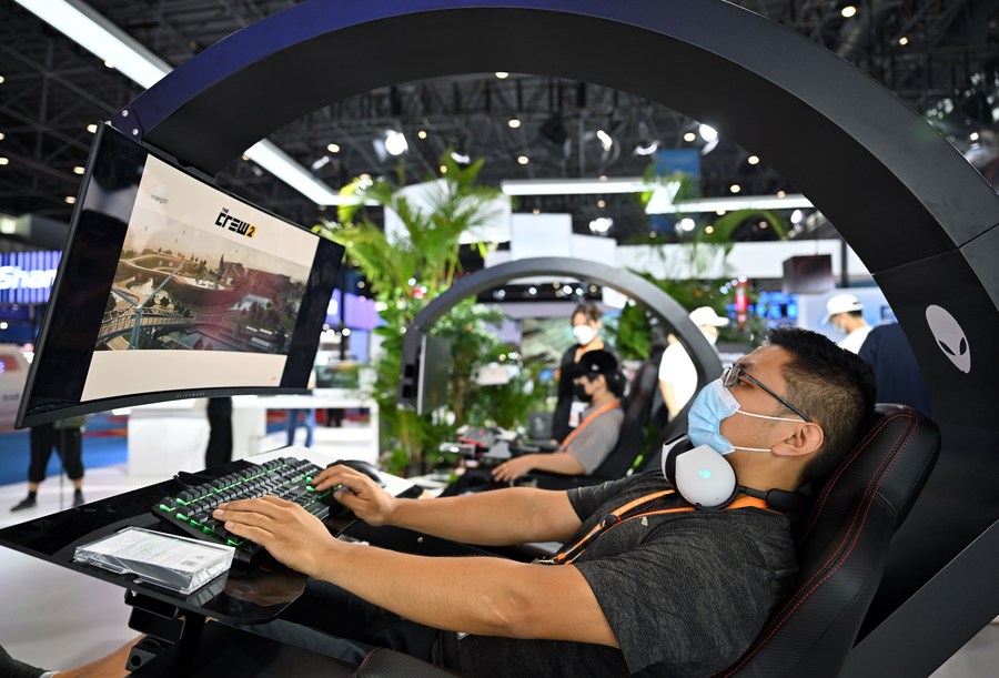 Visitors try gaming capsules during the second China International Consumer Products Expo in Haikou, south China's Hainan Province, July 25, 2022. (Xinhua/Guo Cheng)