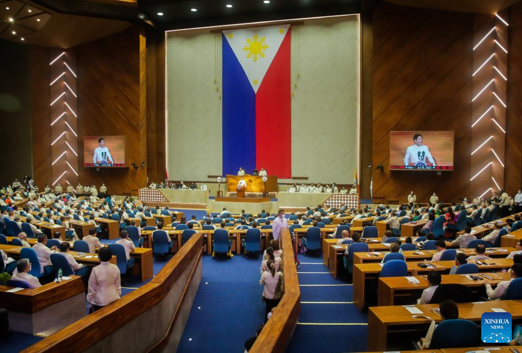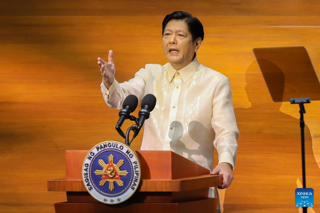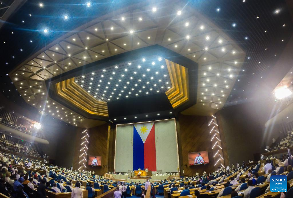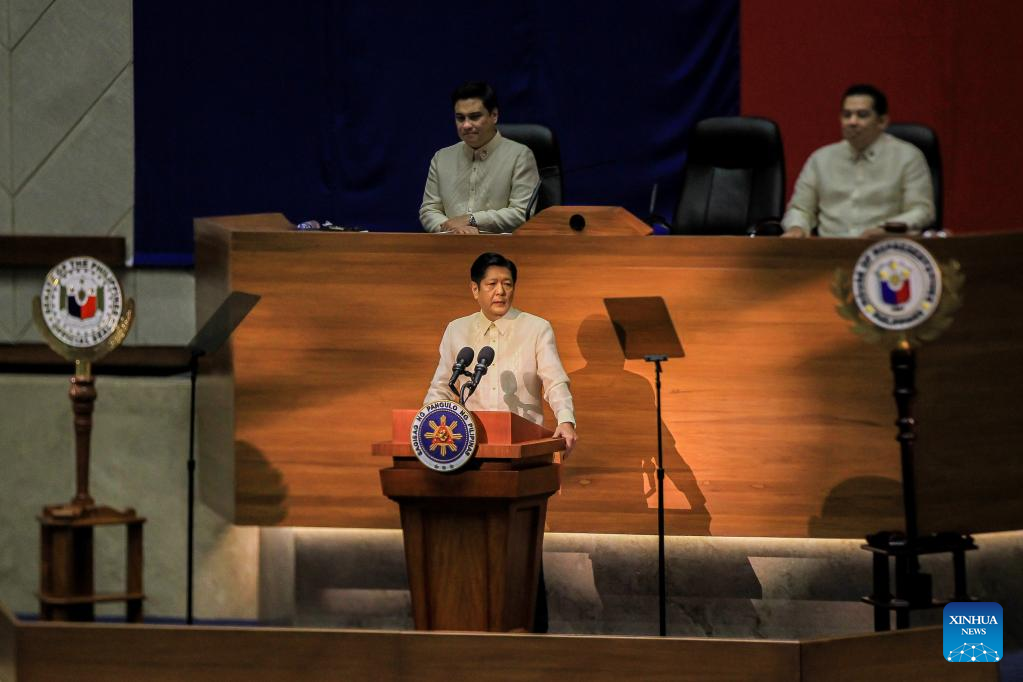 MANILA, July 25 (Xinhua) -- Philippine President Ferdinand Romualdez Marcos on Monday unveiled his plans in his first state of the nation address to ensure economic growth amid global uncertainties.