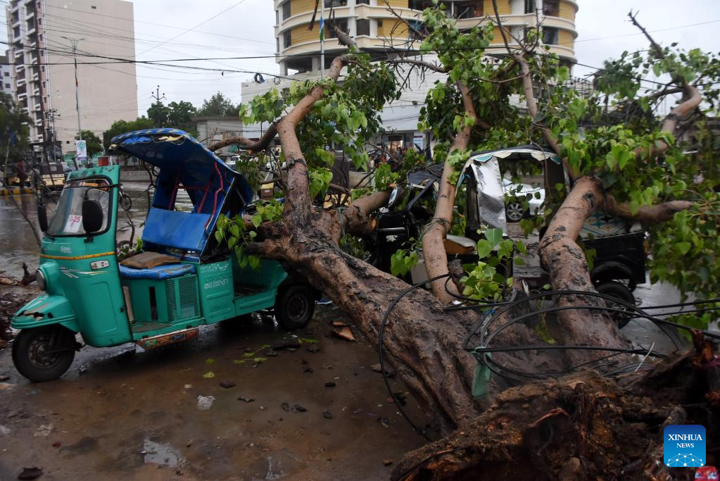 Auto rickshaws are seen damaged by fallen trees after heavy rain in southern Pakistani port city of Karachi, on July 25, 2022. Around 310 people have been killed and 295 others injured in separate rain-related incidents in Pakistan since June 14 as heavy downpours continued to lash the country, the National Disaster Management Authority (NDMA) said. (Str/Xinhua)