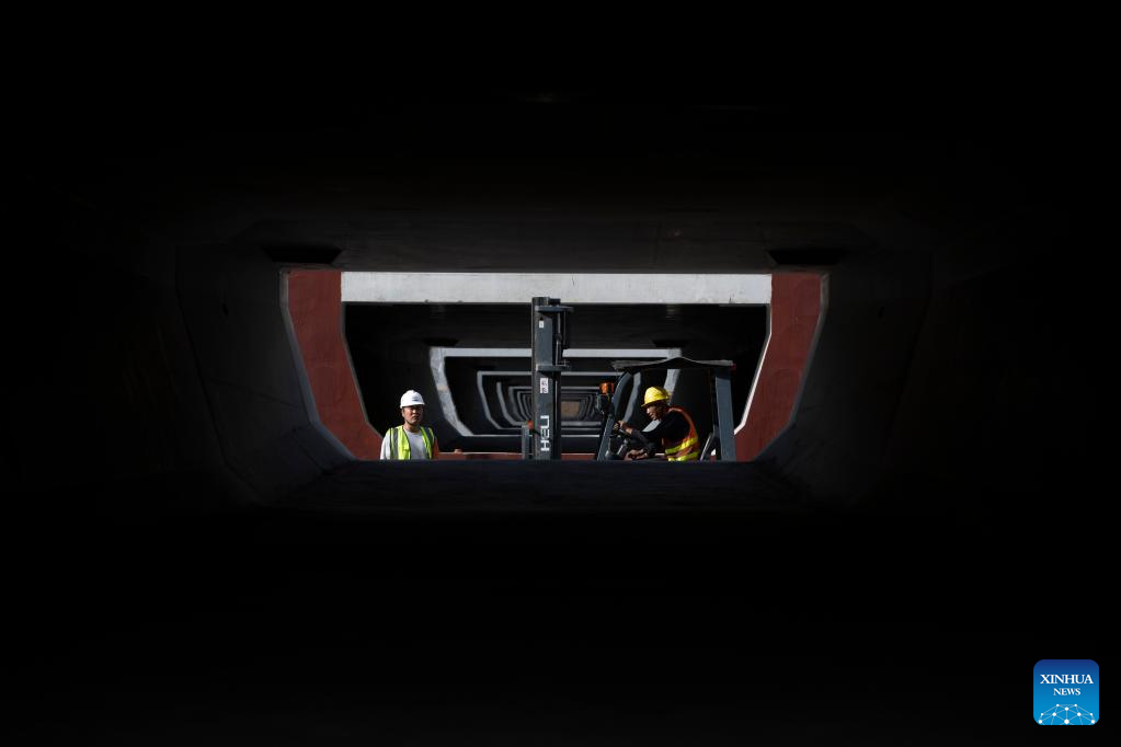 A worker operates at a beam fabrication yard in Yichun, northeast China's Heilongjiang Province, on July 25, 2022. Crossing permafrost regions, the Harbin-Yichun high-speed railway will total approximately 300 km with a designed speed of 250 km per hour. (Xinhua/Zhang Tao)