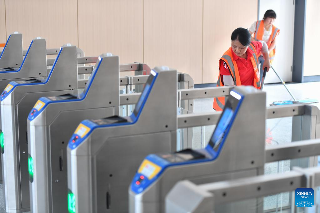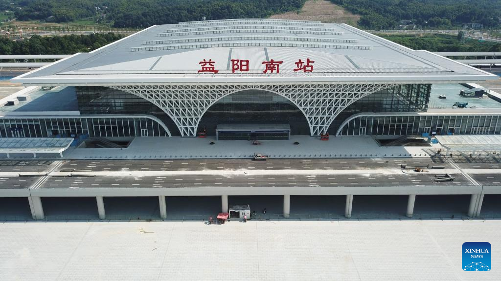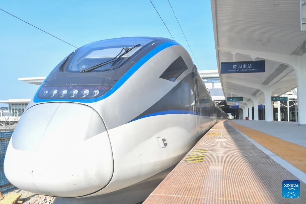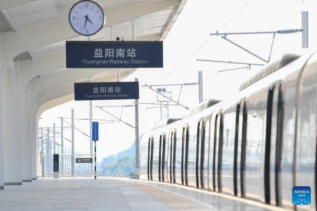 The Yiyang-Changsha section of the Changde-Yiyang-Changsha high-speed railway will soon open to traffic with a designed speed of 350 kilometers per hour. This will significantly reduce travel time between Yiyang and the Changsha-Zhuzhou-Xiangtan city cluster. Following the rail section's operation, all the 14 cities and prefectures in Hunan Province will have access to high-speed railway network. (Xinhua/Chen Zeguo)