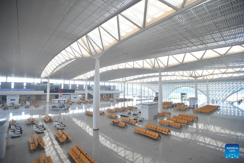 Photo taken on July 26, 2022 shows the waiting hall of the Yiyang South Railway Station in Yiyang, central China's Hunan Province.