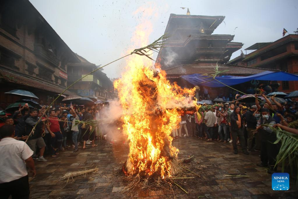 People observe the Ghantakarna Festival in Bhaktapur, Nepal, July 26, 2022. Members of the Newar community in the Kathmandu Valley observe the festival to chase away evil spirits and usher in good fortune. (Photo by Sulav Shrestha/Xinhua)