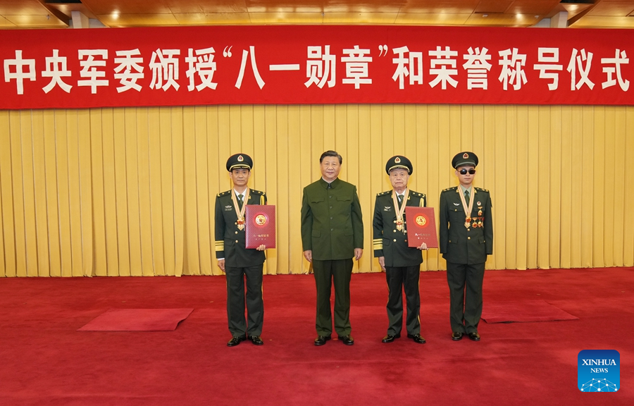 Xi, also general secretary of the Communist Party of China Central Committee and chairman of the Central Military Commission (CMC), helped the individuals wear their medals, presented them with certificates of honor, and took photos with them.