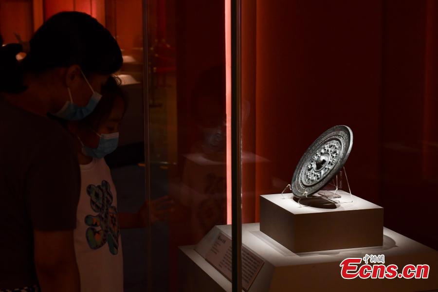 Visitors view an bronze mirror from the Tokyo National Museum at the National Museum of China, Beijing, July 27, 2022. (Photo: China News Service/Tian Yuhao)