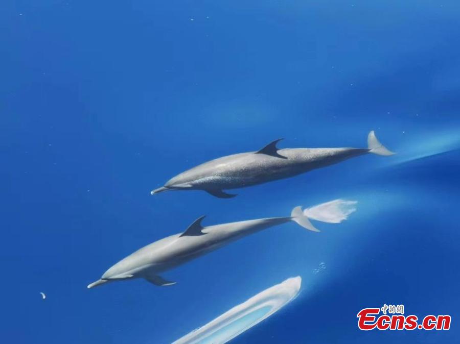 A group of dolphins are spotted frolicking in waters of the Xisha Islands, the South China Sea, July 29, 2022. (Photo provided to China News Service)