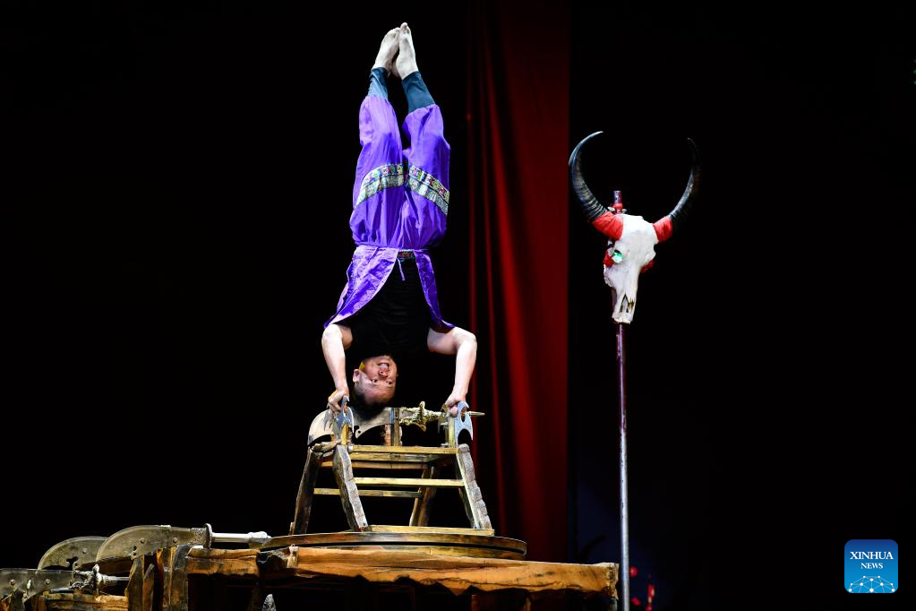 An actor performs in the show "Colorful Guizhou Style" at Guiyang Grand Theatre in Guiyang, southwest China's Guizhou Province, July 30, 2022. Performance of the song and dance show "Colorful Guizhou Style" has recently resumed at Guiyang Grand Theatre.