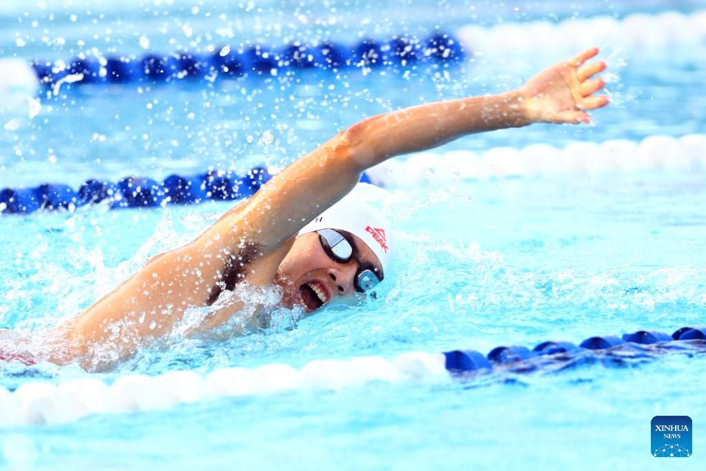 Xie Linzhi of China competes in the swimming of the team-relay mix at the UIPM 2022 Pentathlon World Championships in Alexandria, Egypt, July 31, 2022. (Xinhua/Ahmed Gomaa)